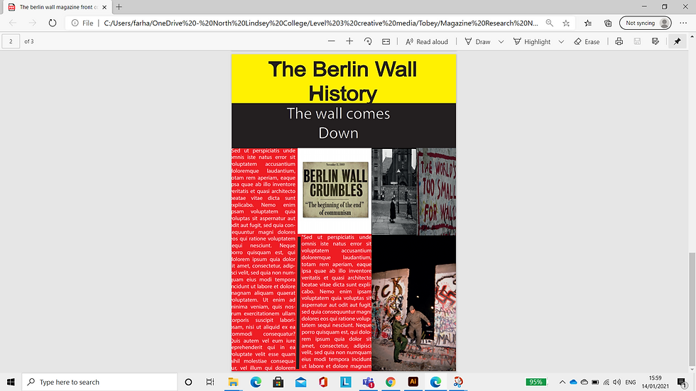 One of the histories I've picked is the berlin wall as part of my magazine design. Reason being is i was fascinated by how the history of the wall started and how it changed throughout the years.