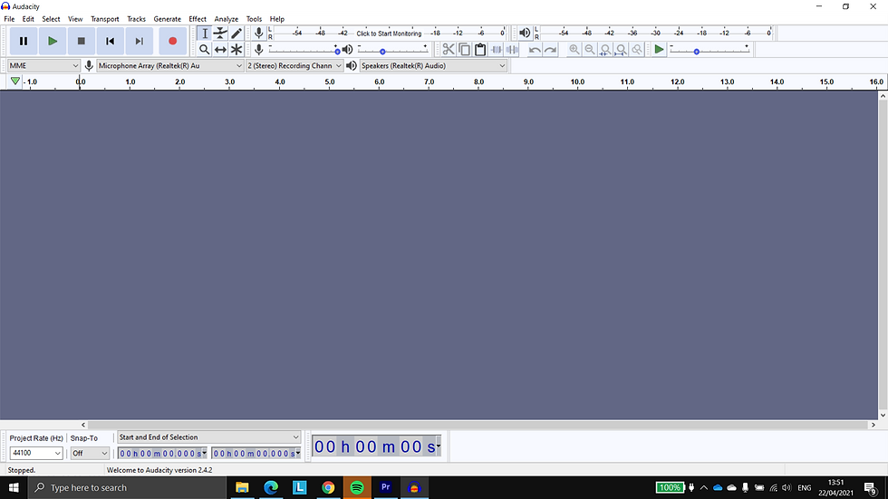 The Image above is a screenshot of the application Audacity. and with audacity, i recorded an audio voiceover to add onto premiere pro. with audacity i was able to follow my script and speak through what i am meant to be saying. and then transfer and convert all of that into premiere pro where i then can start my editing process.